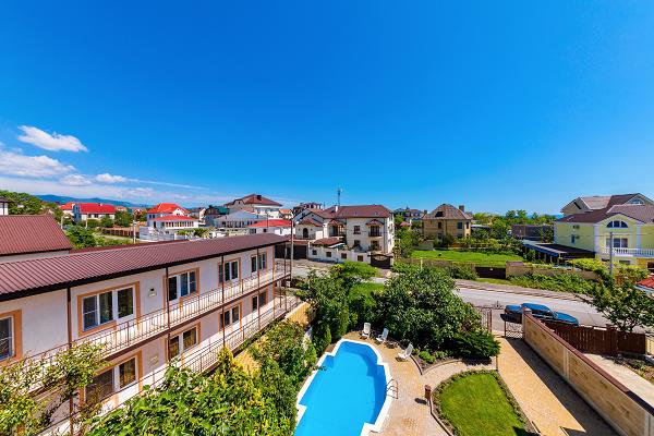 Инфраструктура: три корпуса, каждый корпус имеет свой бассейн, прекрасную озелененную территорию с инфраструктурой. Множество цветов, клумб, вымощенных дорожек.