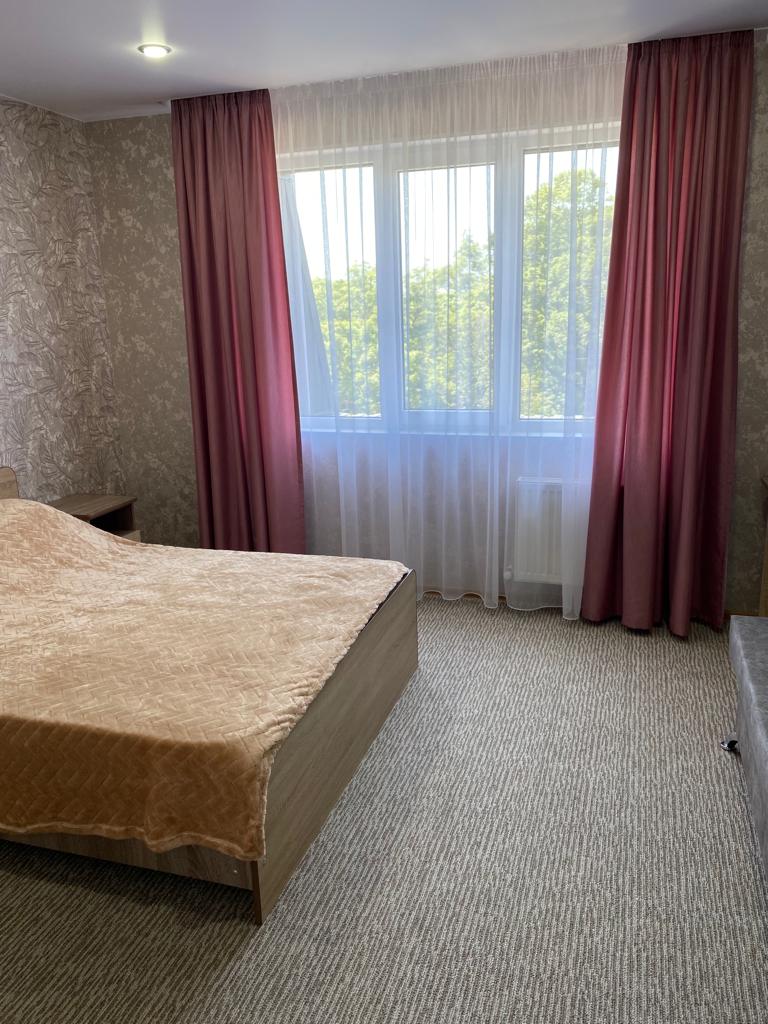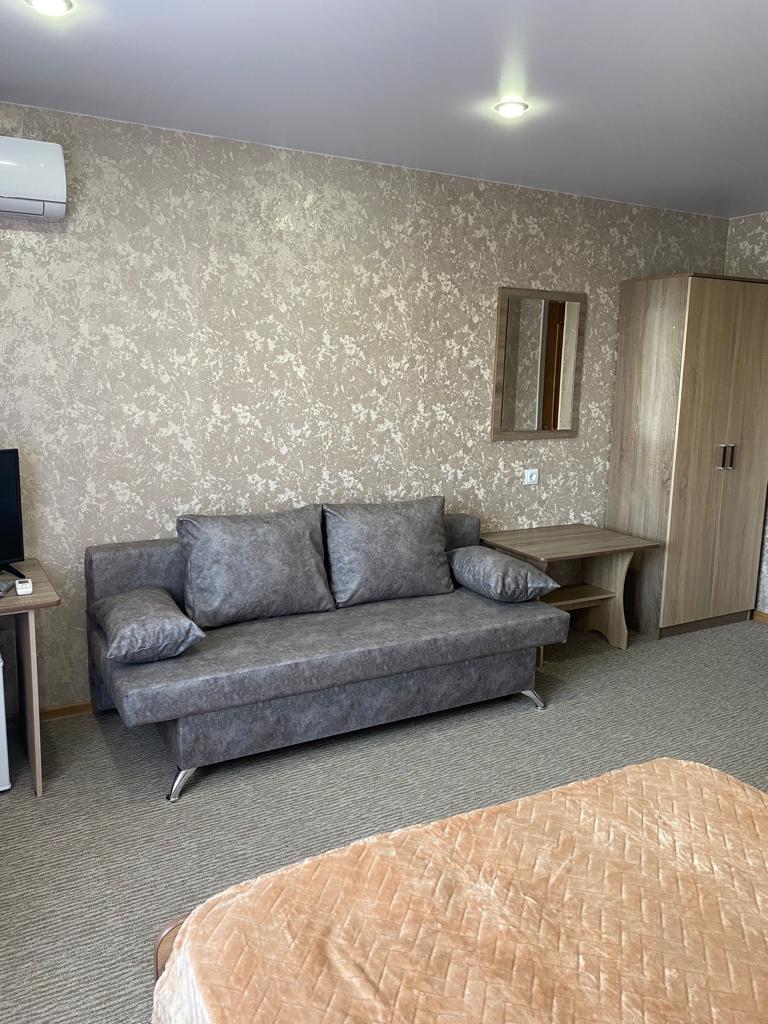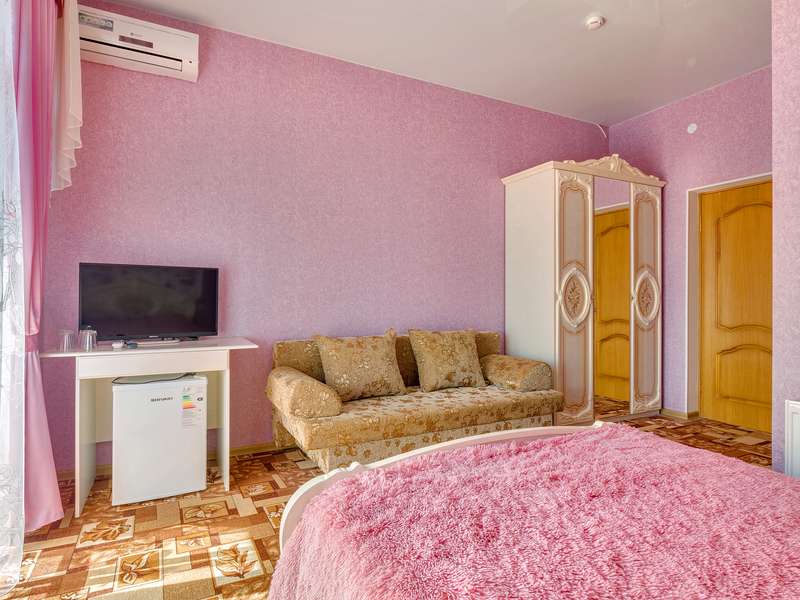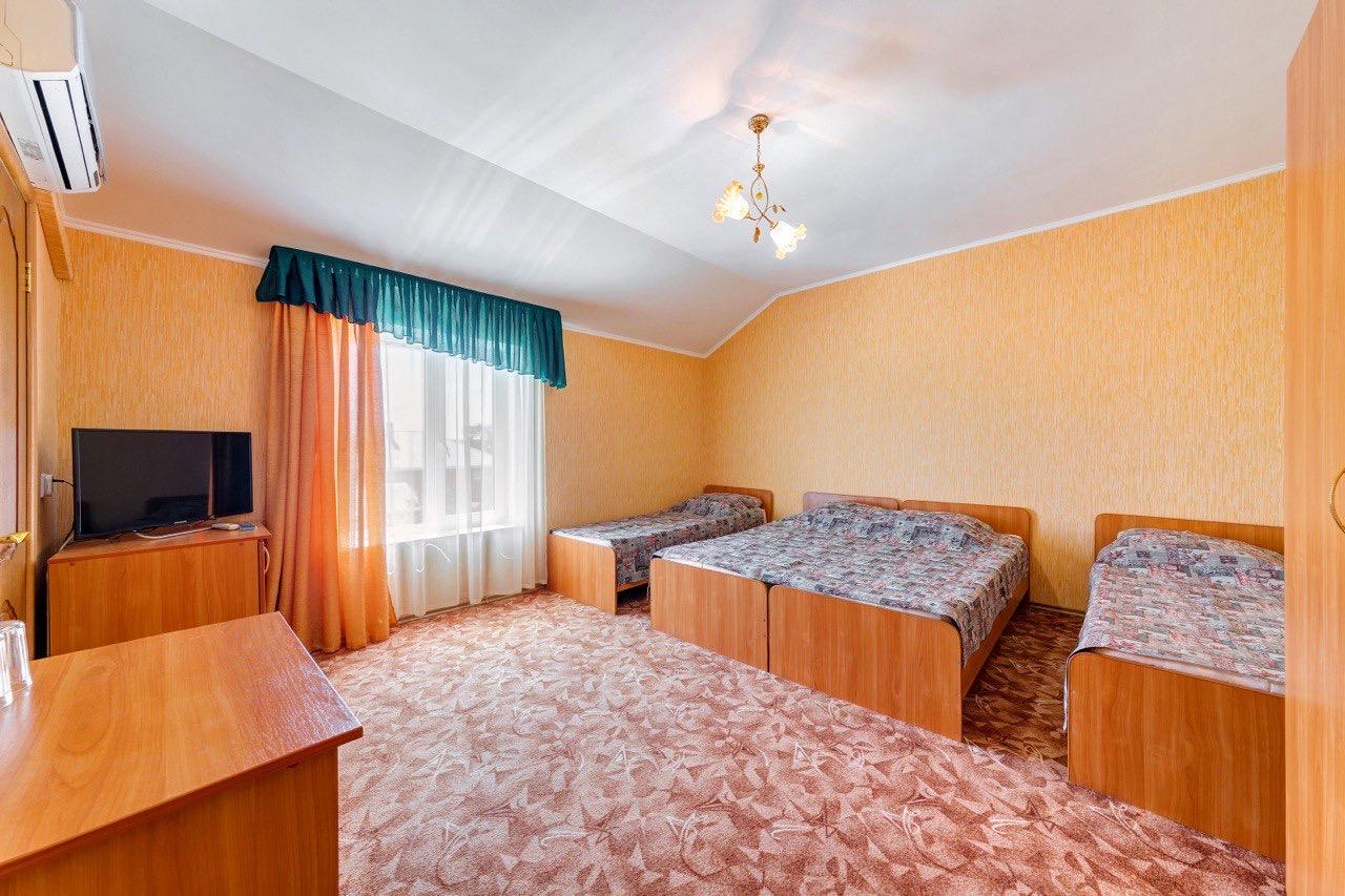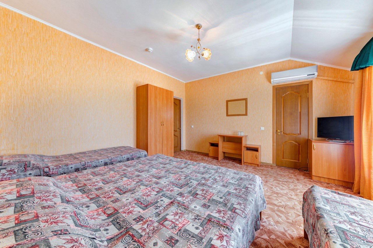 В номере: кровати, тумбочки, шкаф стол, зеркало, ТВ, холодильник, кондиционер (сплит-система), санузел.